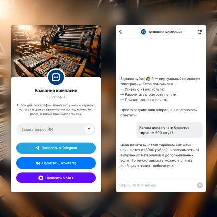Отраслевые чат-боты с ИИ (AI) в категории: "Полиграфические услуги, тиражирование, фото"