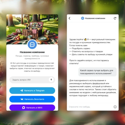 Отраслевые чат-боты с ИИ (AI) в категории: "Посуда, сервизы, приборы, кухонные принадлежности"
