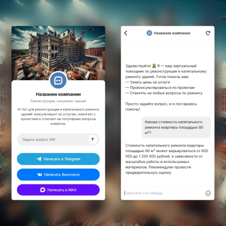 Отраслевые чат-боты с ИИ (AI) в категории: "Реконструкция и капремонт зданий"