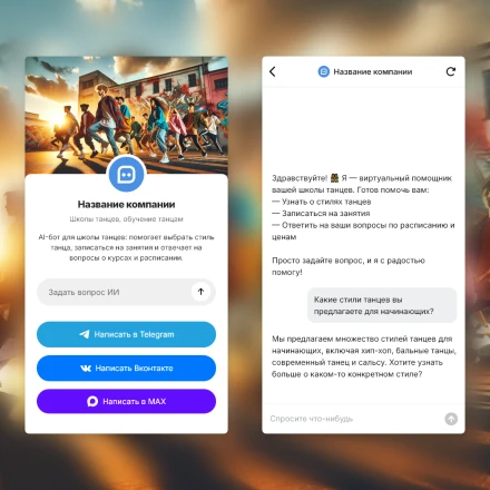 Отраслевые чат-боты с ИИ (AI) в категории: "Школы танцев, обучение танцам"