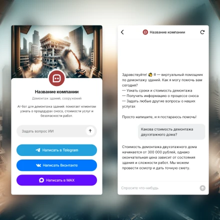 Отраслевые чат-боты с ИИ (AI) в категории: "Снос зданий, сооружений"