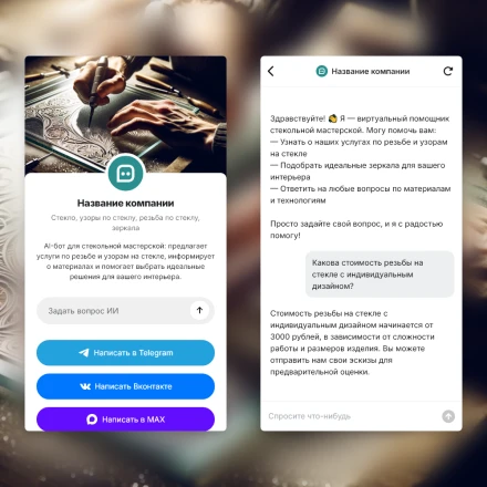 Отраслевые чат-боты с ИИ (AI) в категории: "Стекло, узоры по стеклу, резьба по стеклу, зеркала"