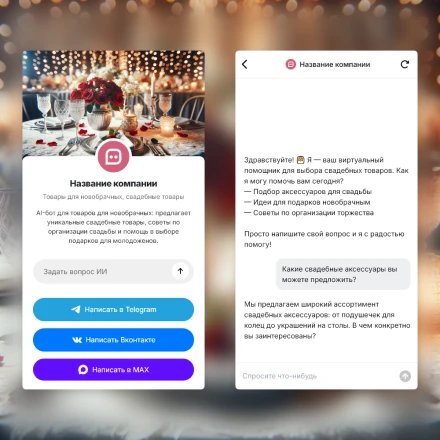 Отраслевые чат-боты с ИИ (AI) в категории: "Товары для новобрачных, свадебные товары"