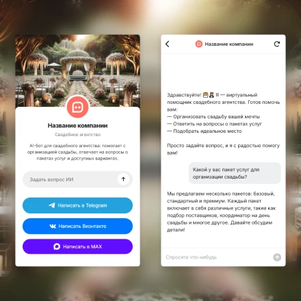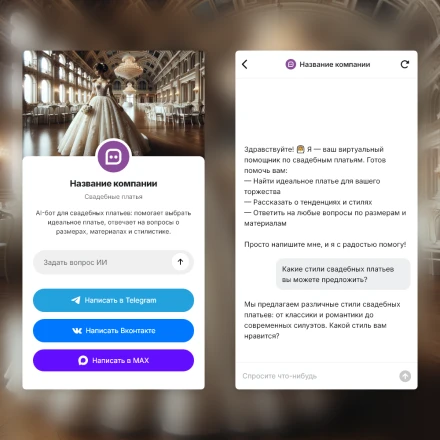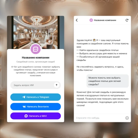 Отраслевые чат-боты с ИИ (AI) в категории: "Услуги свадебного салона"