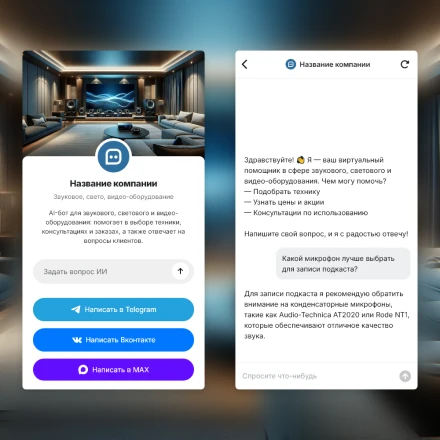 Отраслевые чат-боты с ИИ (AI) в категории: "Звуковое, свето, видео-оборудование"