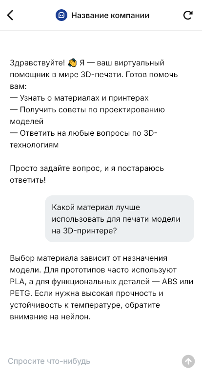 3D-печать заказывают охотнее, когда бот уточняет модель, материал и назначение детали