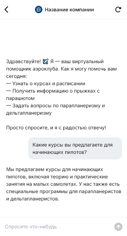 Аэроклуб продаёт полёты увереннее когда бот объясняет программу и готовит гостя к вылету