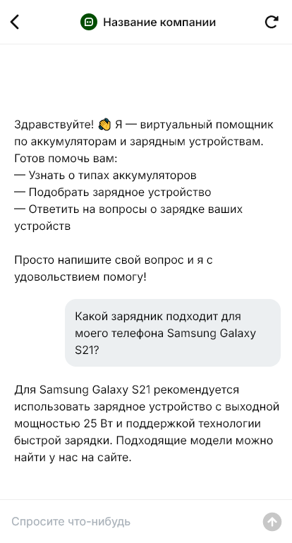 Аккумуляторы продаются точнее, когда бот уточняет нагрузку, условия и сценарий подзарядки