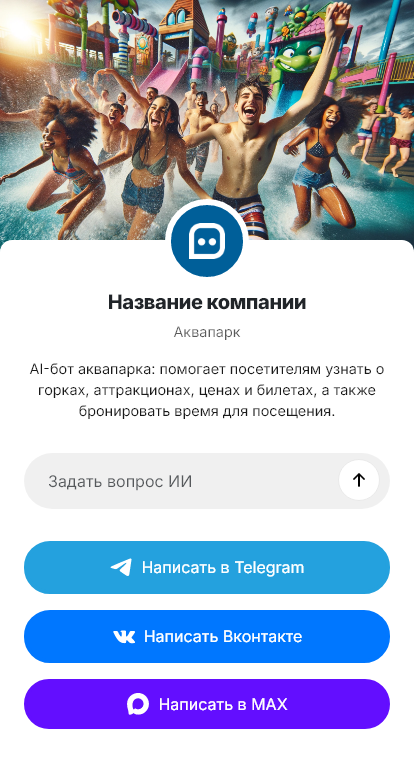 В итоге аквапарк получает больше продаж и меньше очередей. Бот работает в Telegram, VK, MAX и на сайте, превращая вопросы в билеты и помогая гостям комфортнее планировать отдых.