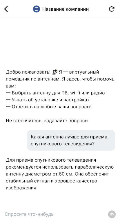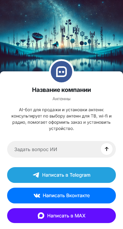 Антенны выбирают по задаче: ТВ, интернет, усиление сигнала, город/дача, расстояние до вышки, тип разъёмов и кабеля. Покупатели часто пишут вечером и ждут быстрый ответ. Бот для антенн помогает автоматизировать первичный подбор и доводить запрос до покупки.