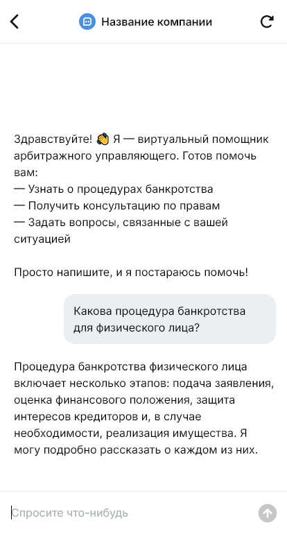 Арбитражный управляющий получает более целевые обращения, когда бот объясняет путь и собирает документы