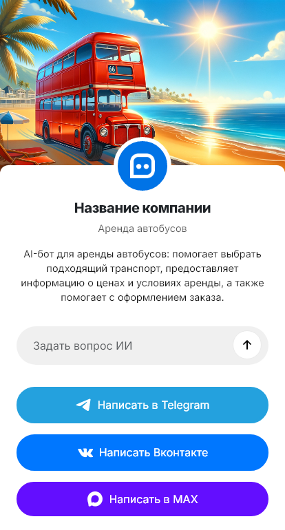 Бот для аренды автобусов помогает собрать параметры и сформировать заказ. Он уточняет дату и время, маршрут, количество пассажиров, длительность аренды, остановки, необходимость сопровождения, требования к классу автобуса (микроавтобус, туристический), багаж и дополнительные опции. На основе данных бот может дать предварительный расчёт, предложить несколько вариантов по бюджету и комфорту и зафиксировать заявку, передав её диспетчеру.