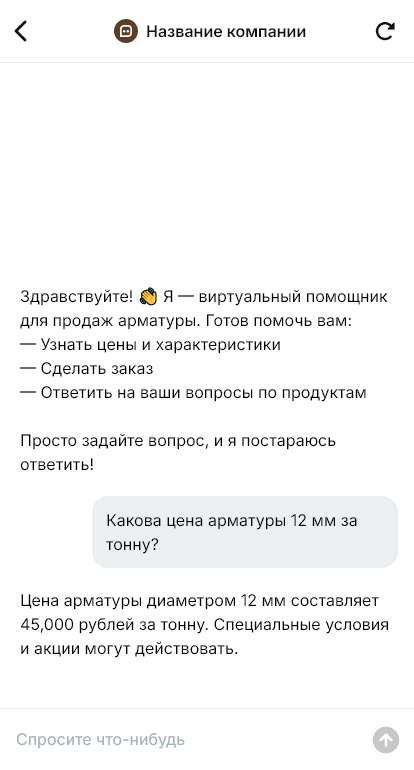 Арматура продаётся быстрее когда бот уточняет марку и объём и сразу собирает заявку