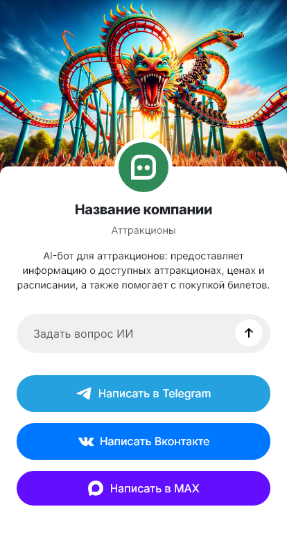 Внедрение настраивается под площадку: расписание, тарифы, сезонность, погодные ограничения, правила, акции, дни рождения и корпоративы, интеграция с кассой/CRM. Бот снижает нагрузку на сотрудников и помогает управлять потоком гостей.