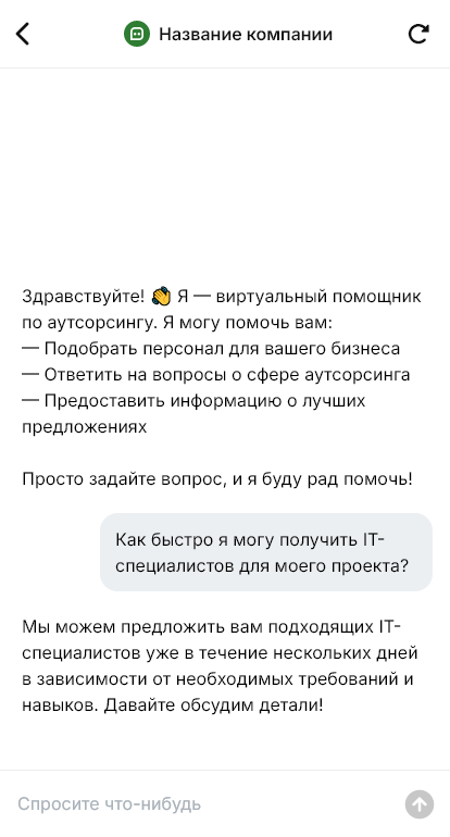 Аутсорсинг продаётся увереннее когда бот собирает вводные и быстро квалифицирует запрос