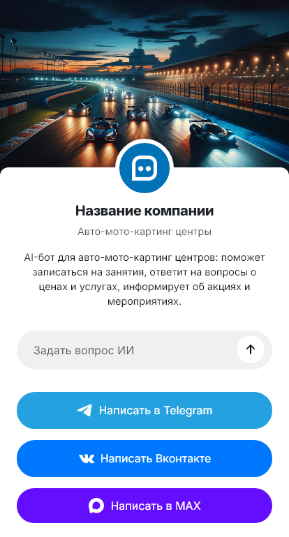Авто-мото-картинг центр увеличивает загрузку, когда бот ведёт клиента к подходящему формату и брони