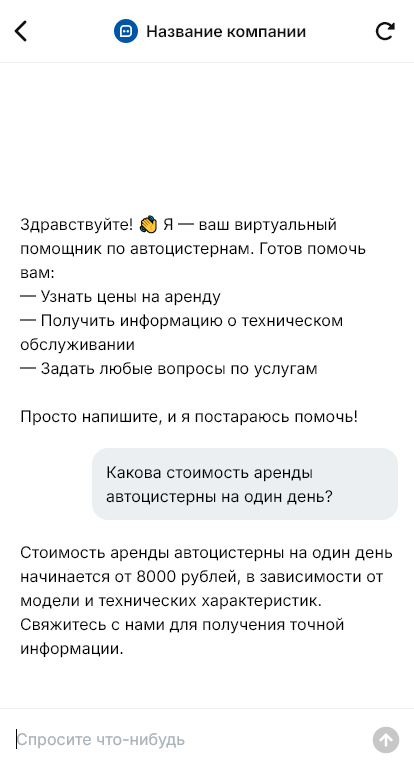 Автоцистерны продаются и арендуются быстрее когда бот собирает параметры задачи и формирует запрос на технику под нагрузку