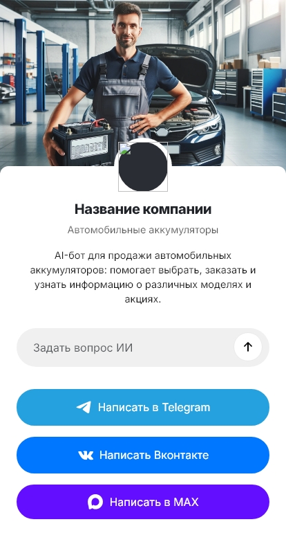 Внедрение настраивается под ваш склад и сервис: наличие, цены, услуги установки и проверки генератора/утечек тока, интеграция с CRM и доставкой. Бот может предлагать утилизацию старого АКБ, диагностику системы зарядки, напоминания о профилактике перед зимой и советы по эксплуатации, чтобы аккумулятор служил дольше.