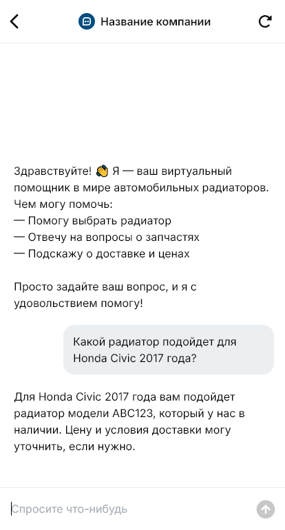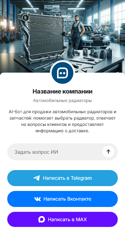 Радиаторы продаются точнее когда бот собирает параметры двигателя и помогает подобрать деталь без ошибок
