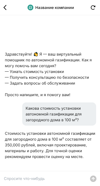Автономная газификация заказывается, когда клиенту нужно надёжное отопление и газ для дома или объекта без подключения к магистрали. На первом контакте люди спрашивают «сколько стоит под ключ» и «какой объём газгольдера нужен», но без исходных данных ответ получается слишком общим. Бот для автономной газификации помогает автоматизировать первичную консультацию, собрать параметры объекта и довести клиента до расчёта и выезда инженера.