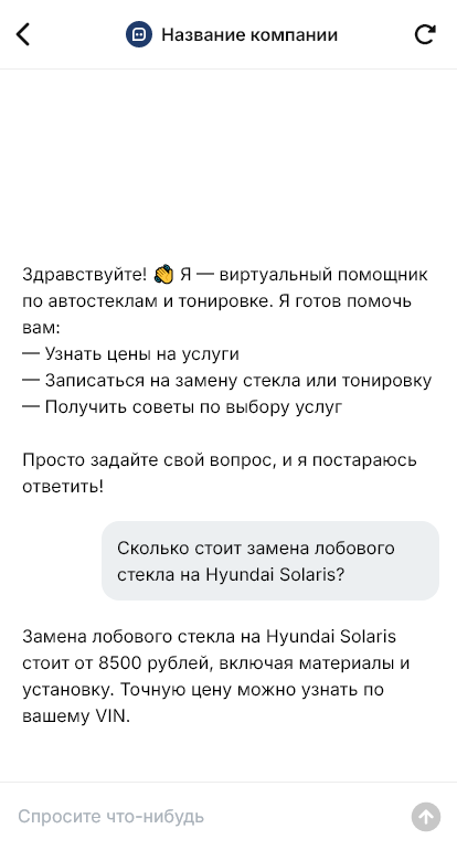 Внедрение настраивается под вашу мастерскую: прайс, наличие стёкол или сроки поставки, виды плёнок, длительность работ, расписание, интеграция с CRM и календарём. Бот отправляет подтверждения, напоминания и памятки по уходу после установки: когда можно опускать стекла, когда можно мыть автомобиль, как избежать дефектов.