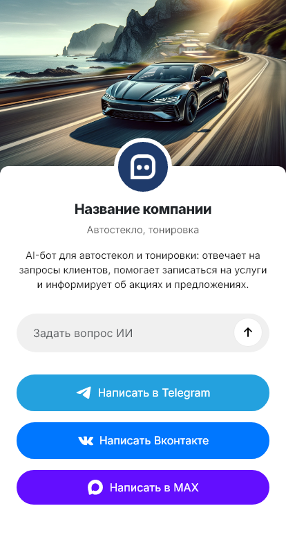 Бот для автостекла и тонировки помогает быстро направить клиента по правильному сценарию. Он уточняет, что нужно: ремонт/замена стекла или тонировка, затем собирает данные по авто, типу стекла, опциям (обогрев, датчики, камера), характеру повреждения или предпочтениям по плёнке и светопропусканию. Бот может запросить фото повреждения или стекла, дать ориентир по варианту решения и сразу предложить запись на удобное время.