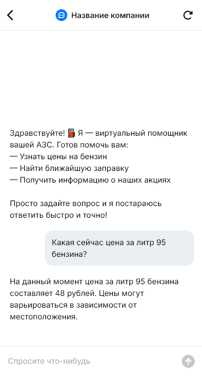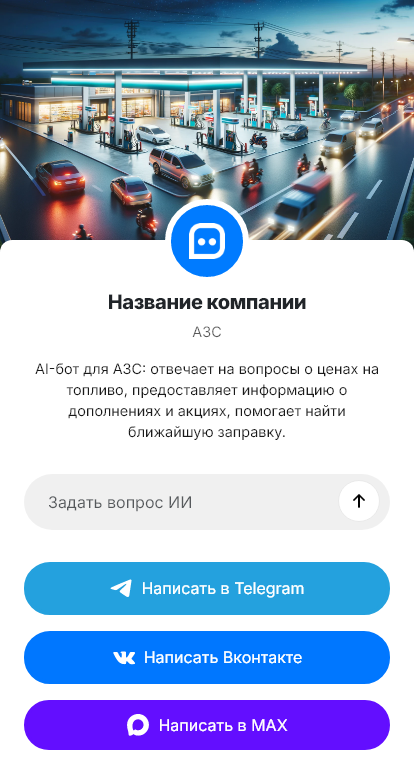 На АЗС клиенты обычно спешат. Им важно быстро понять, какие виды топлива есть, есть ли дизель в наличии, какие цены, как работает бонусная программа, где можно помыть машину, есть ли магазин и кафе, как оплатить через приложение, что делать если терминал не принял карту. В пиковые часы сотрудники не успевают отвечать на вопросы в сообщениях, а часть клиентов уезжает к конкурентам, потому что не получила ответ вовремя.