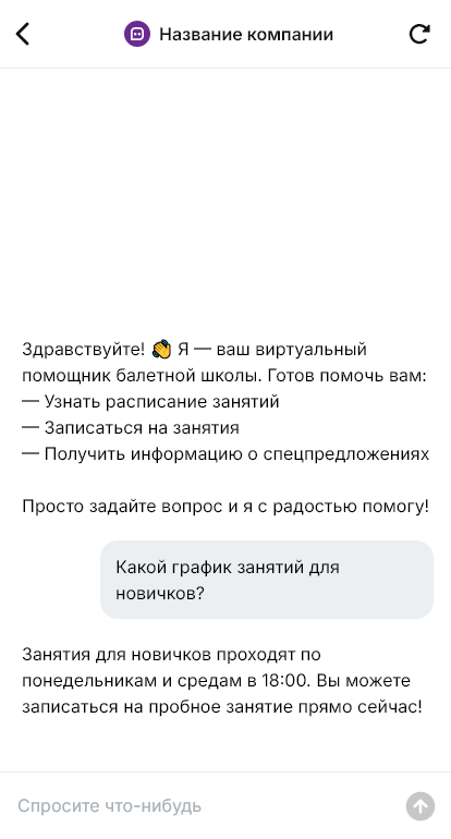 Больше записей в балетную школу начинается с простого шага когда бот отвечает на вопросы родителей и ведёт на пробный урок