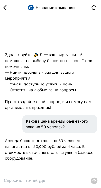 Банкетные залы получают запросы от людей, которые планируют событие и хотят быстро понять стоимость и доступные даты. Свадьбы, юбилеи, корпоративы, выпускные — у каждого формата свои условия по меню, посадке, времени, алкоголю, декору и техническому оснащению. Если отвечать вручную, менеджер тратит много времени на первичные вопросы, а часть клиентов не дожидается ответа и выбирает площадку, где всё понятно быстрее.