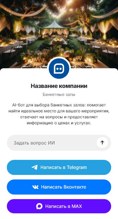В итоге банкетный зал получает больше подтверждённых заявок и меньше потерь на этапе общения. Бот работает в Telegram, VK, MAX и на сайте, превращая вопросы о цене и датах в реальные просмотры и бронирования.