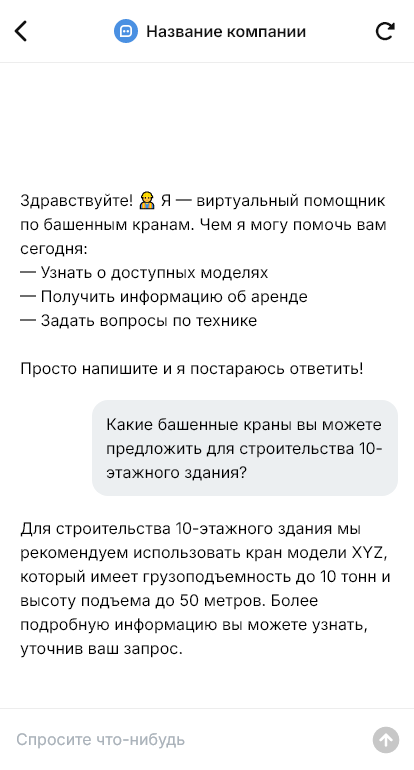 Поставки башенных кранов становятся проще когда бот собирает требования и поддерживает переговоры