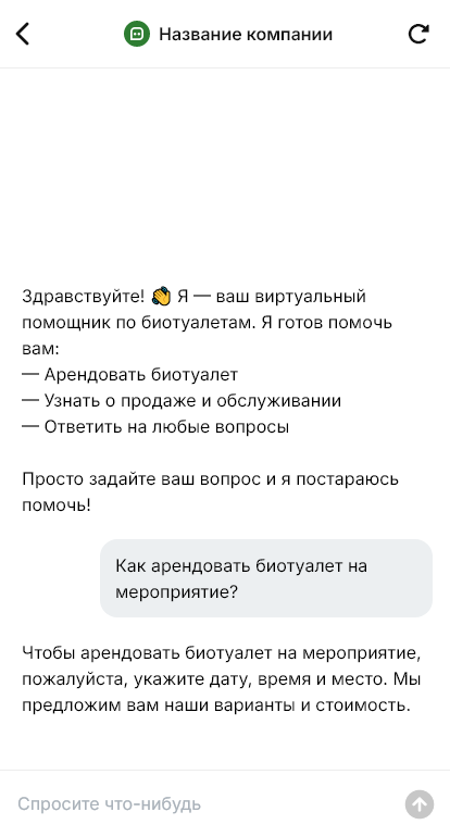 Туалетные кабины и биотуалеты арендуют проще когда бот рассчитывает количество и график сервиса