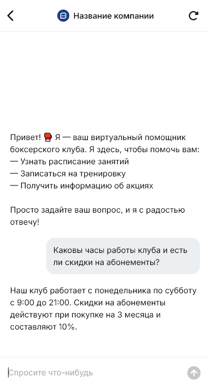 В боксе особенно важно снизить барьер «я не в форме». Бот может аккуратно объяснить, что новичков учат с базовых движений, что нагрузка дозируется, а первые тренировки часто строятся на технике, ОФП и работе с мешком. Такая коммуникация уменьшает страх и повышает вероятность, что человек реально дойдёт до зала.