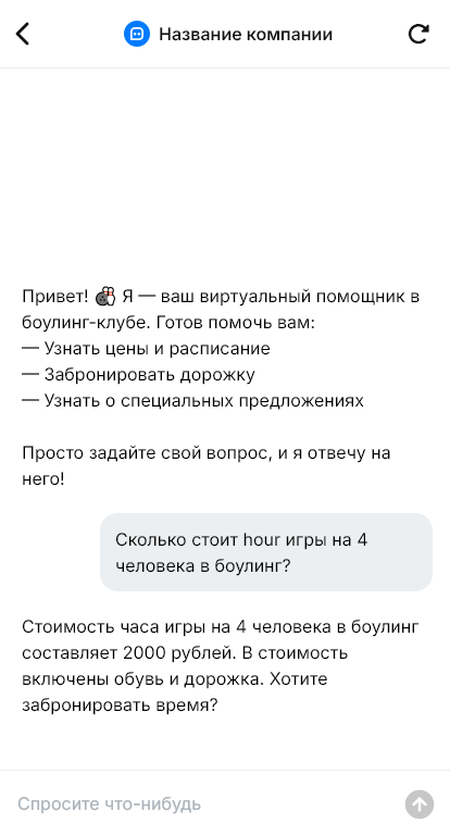 Боулинг обычно выбирают как развлечение для компании, и здесь решает скорость. Гости спрашивают про свободные дорожки, цены, количество игроков, правила, аренду обуви, детские бортики, акции и корпоративные пакеты. В выходные сообщения идут непрерывно, и если администратор не отвечает сразу, люди бронируют в другом месте, потому что хотят просто подтвердить время и приехать.