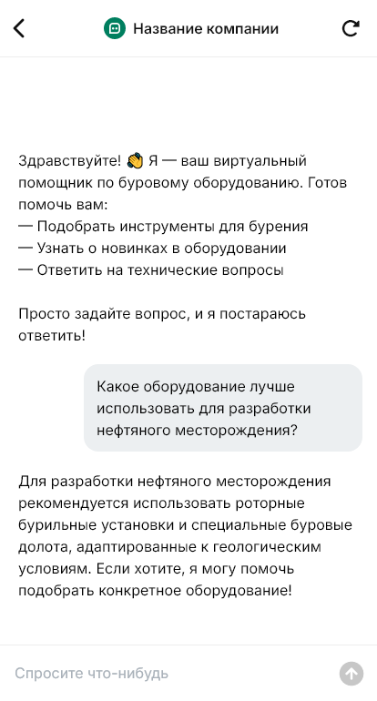В сопровождении бот поддерживает поставку, обучение и сервис. Он сообщает статусы, расчет готов, поставка, монтаж, ввод в эксплуатацию, и хранит инструкции и регламенты. При поломках бот принимает заявку, собирает симптомы и фото, серийный номер и условия работы, чтобы сервис заранее подготовил запчасти и рекомендации. В итоге буровые проекты запускаются быстрее, меньше ошибок в комплектации, а эксплуатация становится предсказуемой благодаря боту, который фиксирует параметры и сопровождает процесс.