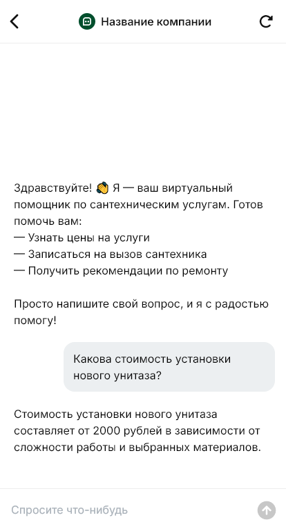 Чат-бот уточняет адрес, тип проблемы, срочность и удобное время, просит фото/видео, если нужно, и задаёт короткие вопросы, которые экономят время мастера: тип труб, доступ к узлу, есть ли перекрытие воды, какая сантехника установлена. По сценарию бот может дать ориентир по стоимости или диапазон, объяснить, какие варианты решения возможны, и сразу предложить ближайшие интервалы выезда.