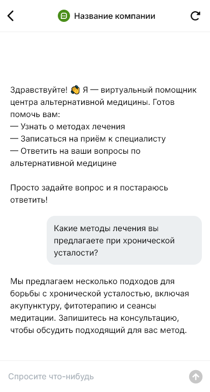 Центр альтернативной медицины не теряет клиентов когда бот быстро направляет и записывает