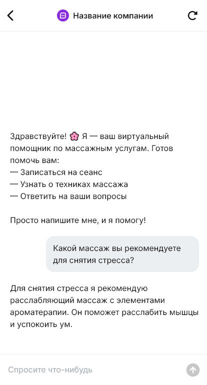 В итоге у массажиста меньше отвлекающих переписок и больше времени на качество работы, а у клиента — удобный сервис и быстрый ответ. Это повышает конверсию обращений в запись, помогает стабилизировать график и развивать частную практику без расширения штата.
