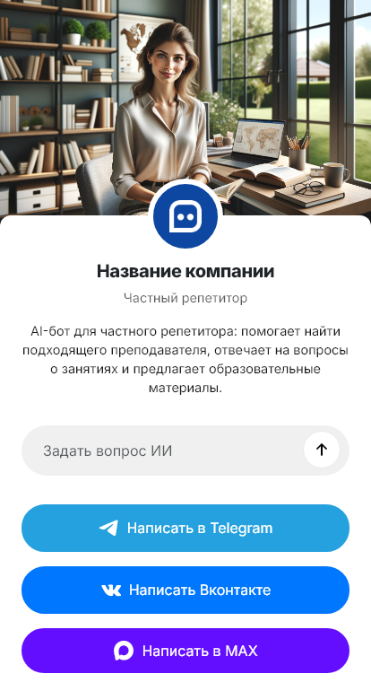 Частные репетиторы получают однотипные вопросы: стоимость, свободные слоты, формат занятий, подготовка к экзаменам, уровень ученика. Когда вы ведёте уроки, отвечать сразу сложно — и часть заявок теряется. Бот для частного репетитора автоматизирует первичный контакт и фиксирует каждое обращение.