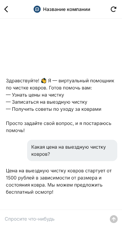 Чистка ковров продаётся стабильнее когда бот уточняет материал и загрязнения и сразу оформляет выезд с понятной ценой