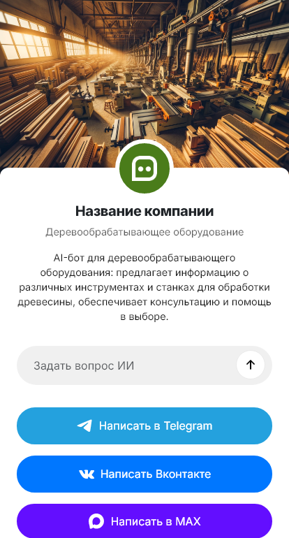 В сопровождении бот держит поставку, монтаж и сервис. Он сообщает статусы, заказ, доставка, установка, пусконаладка, обучение, и хранит инструкции и регламенты. При неисправностях бот принимает заявку, собирает коды ошибок, фото, видео и серийные номера, чтобы сервис быстрее диагностировал. Он может напоминать о замене фильтров аспирации и обслуживании шпинделей и подшипников. В итоге деревообрабатывающее производство быстрее выходит на плановую мощность и меньше простаивает благодаря боту, который помогает с подбором и поддержкой.