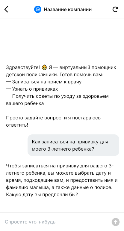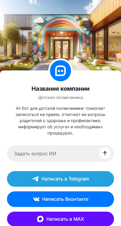 Решение работает в Telegram, VK, MAX и на сайте и настраивается под регламенты и структуру поликлиники. Это снижает нагрузку на персонал и повышает удобство для родителей.