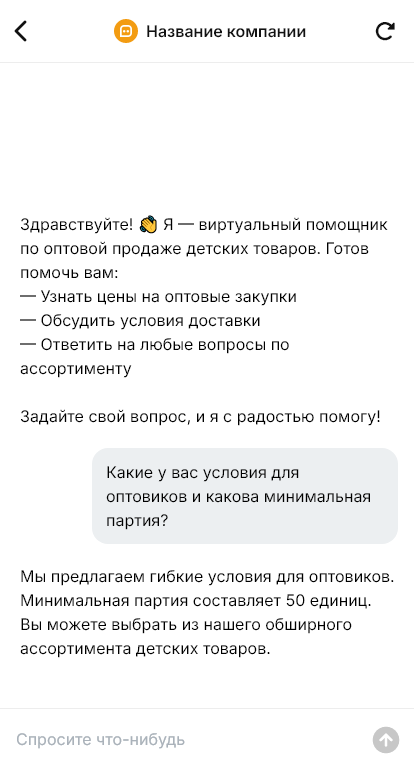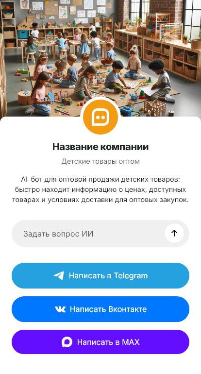 Детские товары оптом закупают магазины, сети и маркетплейсы. Клиенты спрашивают ассортимент, наличие, цены, минимальные партии, документы, сертификаты и доставку. Если ответ задерживается, заказ уходит конкурентам. Бот для детских товаров оптом помогает автоматизировать первичный контакт и собрать вводные для КП.