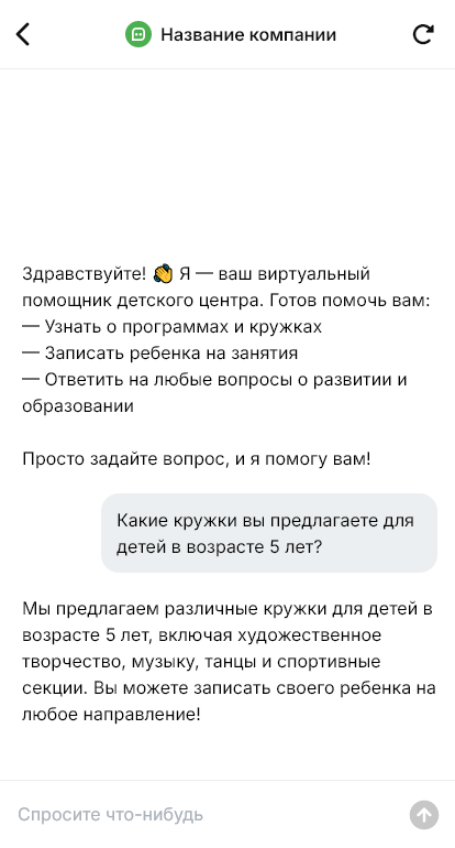 Детский центр и сад выбирают проще, когда бот помогает сориентироваться в программах и местах