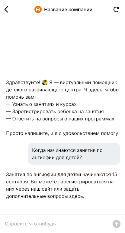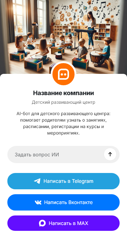 Внедрение настраивается под центр: расписание групп, стоимость абонементов, правила посещения, документы, интеграция с CRM/календарём, оплата. Бот может отправлять памятки для первого визита, напоминания и рекомендации после пробного занятия, чтобы родителю было легче принять решение.