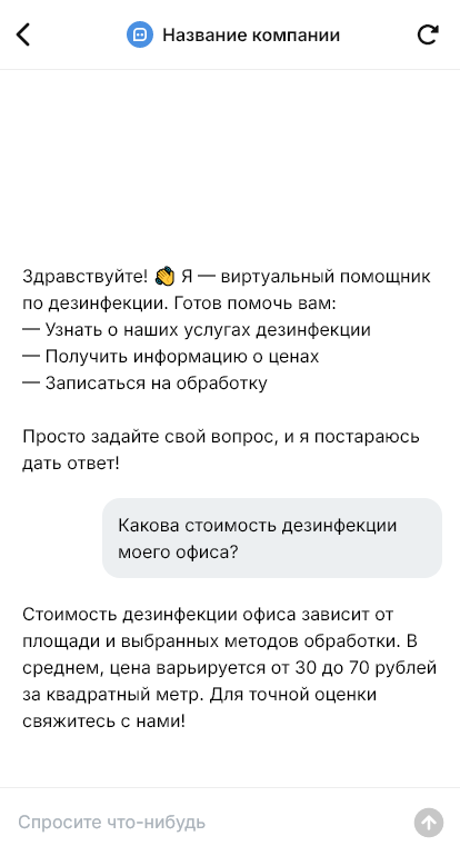 Дезинфекцию заказывают быстрее когда бот уточняет объект и сразу оформляет заявку с правильными параметрами