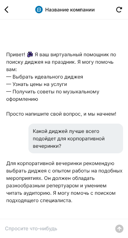 Диджея на праздник заказывают быстрее, когда бот помогает выбрать пакет и собрать требования площадки