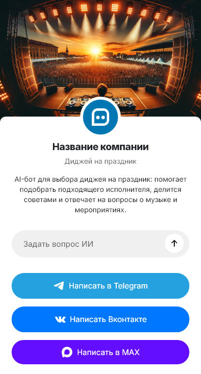 Внедрение настраивается под работу исполнителя: технический райдер, условия выезда, логистика, правила отмены, интеграция с календарём, шаблоны договорённостей. Бот помогает согласовать плейлист заранее и собрать «чёрный список», чтобы в день мероприятия не возникало конфликтов.