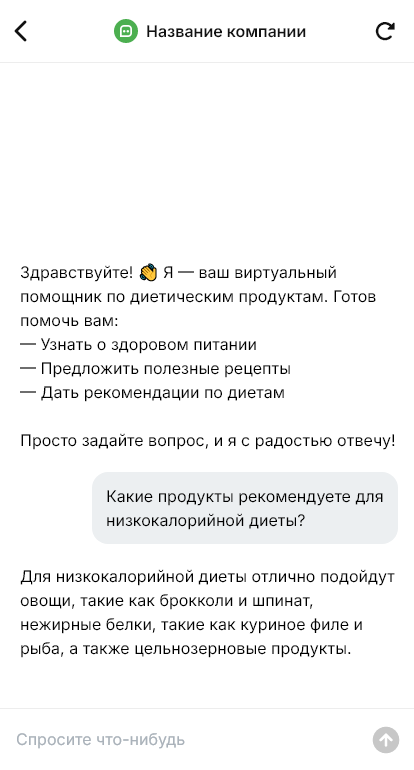 Диетические товары продаются увереннее когда бот помогает подобрать продукт под цель