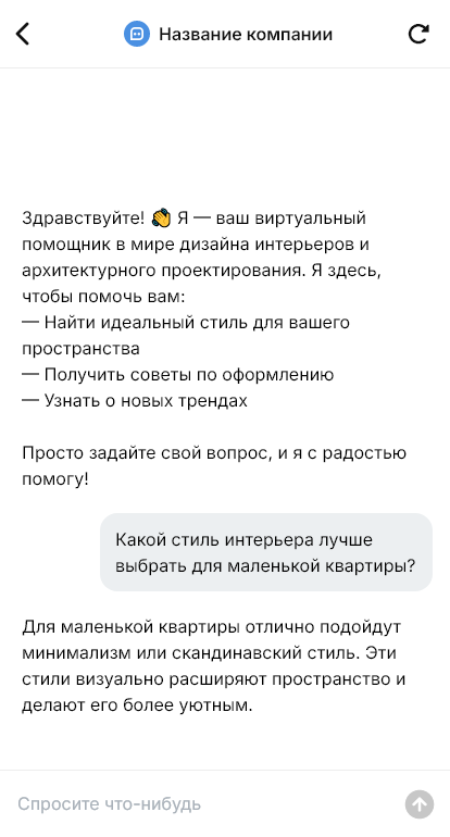Дизайн интерьера продаётся быстрее когда бот собирает бриф и переводит к консультации